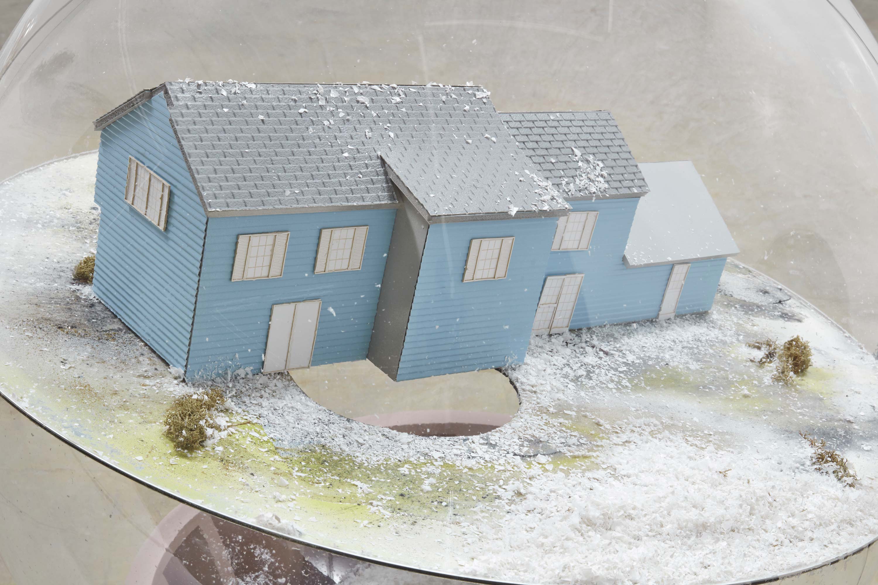 Balsa wood, resin, snow #15, plaster, foam, acrylic, aluminum, graphite, shoe polish, LED, plexiglass, driver, 127 × 81.3 × 91.4 cm