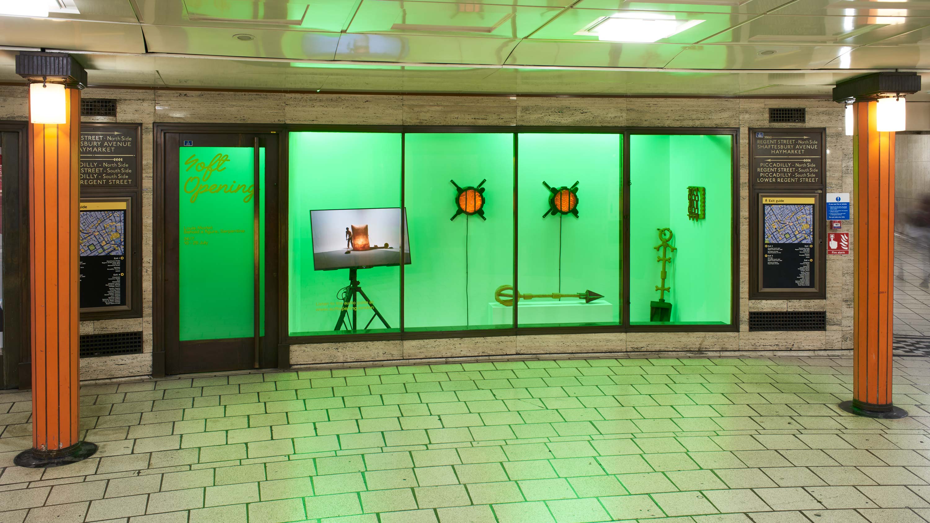 Representing attempts to understand the psycho-geography of his surrounding city, for Morlet, the sculptures seek an essence of place by ontologically describing landscape through material. Abstracting this landscape and transforming it into something new feels Frankenstein-esque: these sculptures constitute morphed, manipulated and surreal interpretations of place. Whether skin-like, latex light-boxes or a slender and useless clay spear or spade, Morlet’s sculptures exacerbate futility, perverting our associations of what might be expected from a reliable piece of weaponry by using clay, a material associated with fragility. Furthermore, digging up “new relics” posits the artist’s notion of “instant