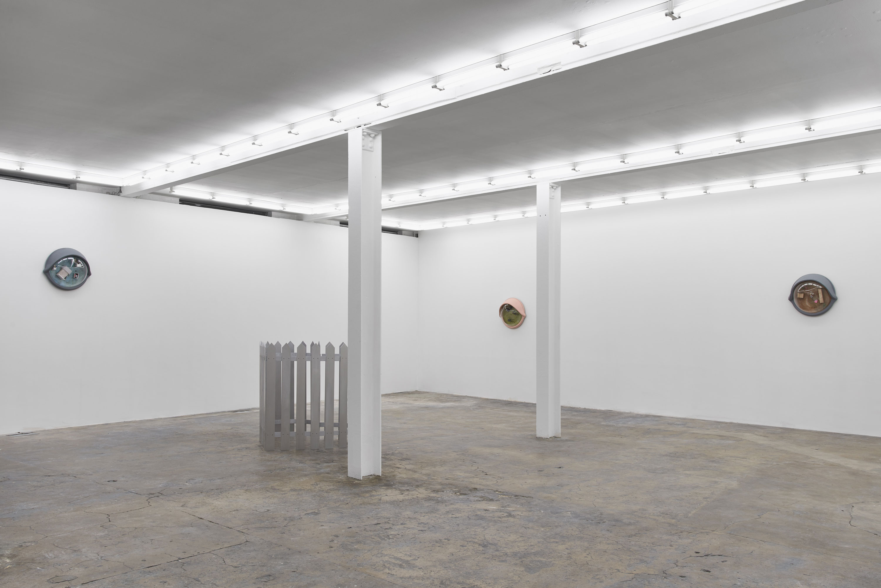 A suburban view, encased, these spaces are empty, and viewers are left to imagine the bodies that do not inhabit them. These missing bodies felt more acutely since the rooms are set inside eyelid-shaped constructions, a reminder also of a surveillance camera, focused on a fixed setting, its viewpoint eerie and anchored to place. But it is the emptiness that haunts most, a reflection of the interior isolation felt by many people during the COVID-19 lockdowns. Like the sculpture of the heart-shaped white fence which can only fit one and is so sharp it may still cut whoever is standing in it, there is a special, disturbing sadness to these works, a sign of the time. Where a house becomes a cage, the suburban similarity — so often described as oppressive in popular culture — becomes another representation of repetition, of endlessness, like these days.