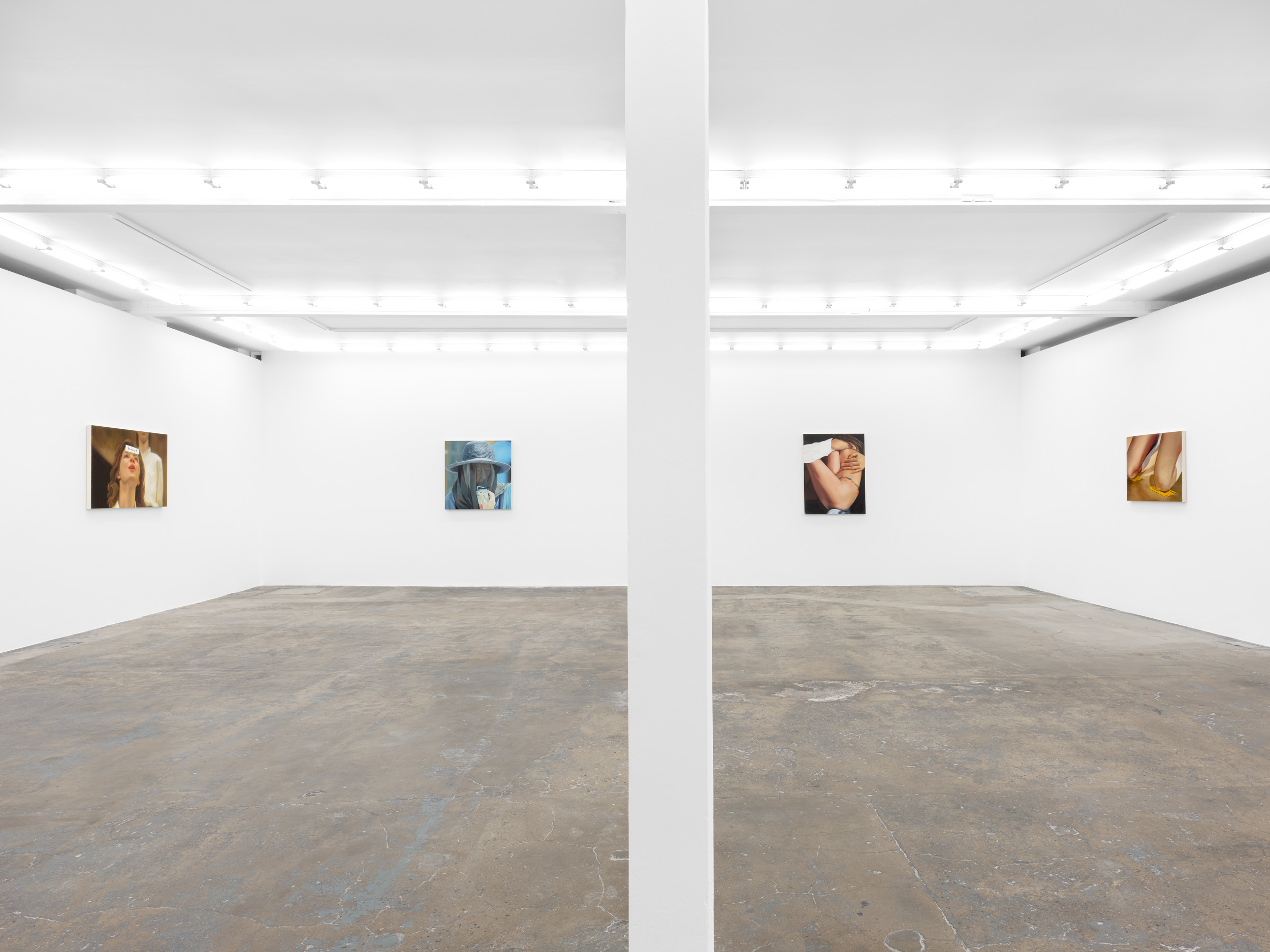 In her most emotionally autobiographical group of works to-date, the artist combines her signature cropped compositions and anonymous figures with motifs from childhood. In their charged stillness, figures interact with objects including building blocks, a curling plastic straw, coloured pencils, a juice box and more, in order to engender a confronting tenor of oddly familiar discomfort within the exhibition. The uncanny combination of disobedience and estrangement with sentimental intimacy that continues to be characteristic of Lucy’s work here enables the artist to examine the psychological architecture of adulthood. In Woman with a juice box, the artist’s focus remains our relationship to our repressed memories, thoughts and feelings and by extension, how we unrelentingly seek their resolution. Lucy imagines and constructs her compositions akin to the way our subconscious builds dreams: through non-linear connections that often confuse and distort reality into an otherwise unforeseen sequence of images and perceptions.