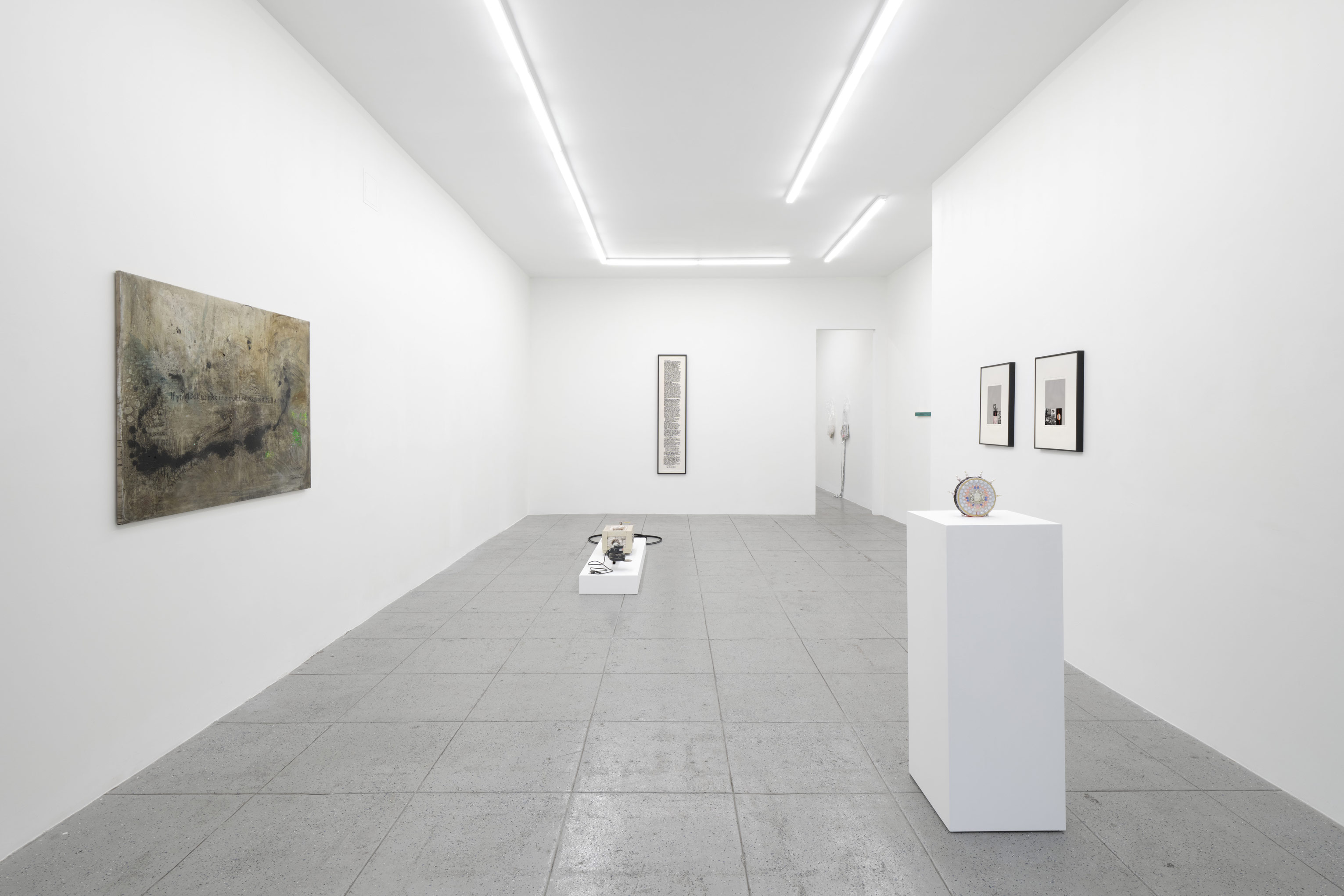 Unlife is concerned with the simultaneous construction and destruction of perfection and purity by revealing the permeability between an object and its surroundings. No object, no artwork — and therefore no single idea or concept — can ever stay pure, whole or isolated from its context. By this logic, an object becomes indistinguishable from its surroundings. The works in this exhibition assemble and disassemble materials, images and thoughts out of detritus and refuse, to generate a continuum of body, machine and landscape. Painting, for example, undoes attempts to keep things clean, unsoiled, sealed and in a perfect “original” state. Rather than surrendering to the unattainable fantasy of an uncorrupted Arcadia, together, via processes of mutation and collapse, the works in Unlife consider how we can live with the unstable, the flawed, the ruin. How can we endure the melancholia of entropy, just as the shepherds encounter the skull in Guercino’s painting?